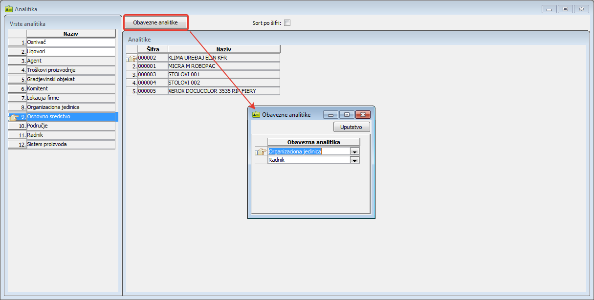 da se za tu analitiku vode tzv. "obavezne analitike" jer preduzeća često imaju potrebu vođenja osnovnih sredstava po