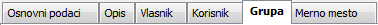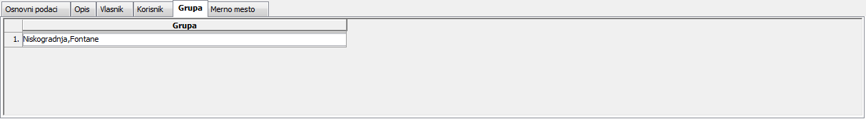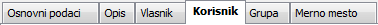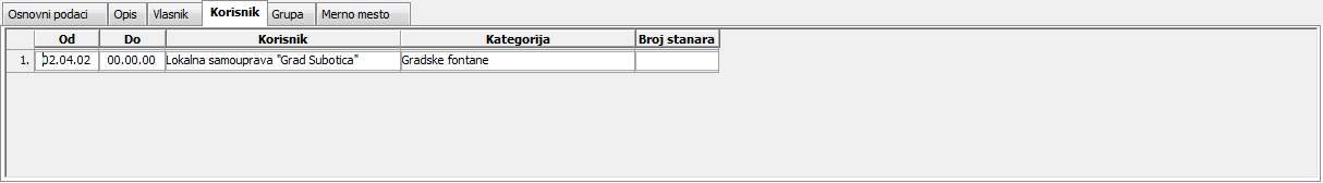 podatke o korisniku građevinskog objekta "Korisnik", peipadnost grupi građevinskih objekata, listić "Grupa" i podatke o mernom