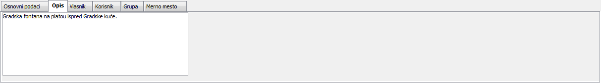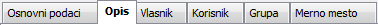Listić "Opis" - sadrži sve one podatke podatke o objektu koji se ne mogu evidentirati u predviđenim kolonama.