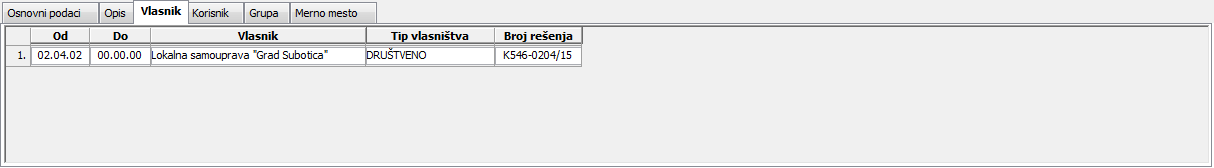 Kolona" Vlasnik" - naziv vlasnika objekta (uzima se iz spiska komitenata),