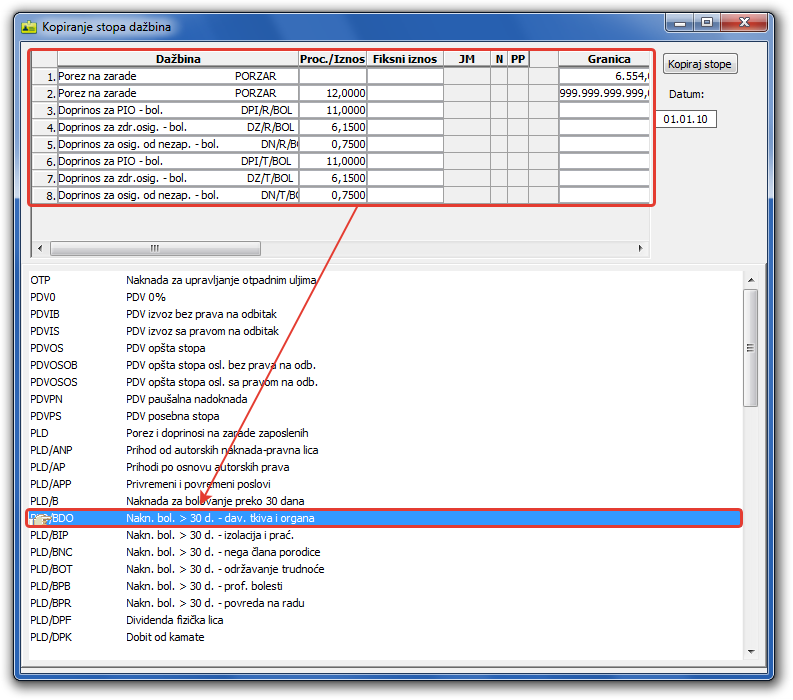 na linija alata. Ukoliko je neka od kopiranih stopa poreza ili doprinosa višak,