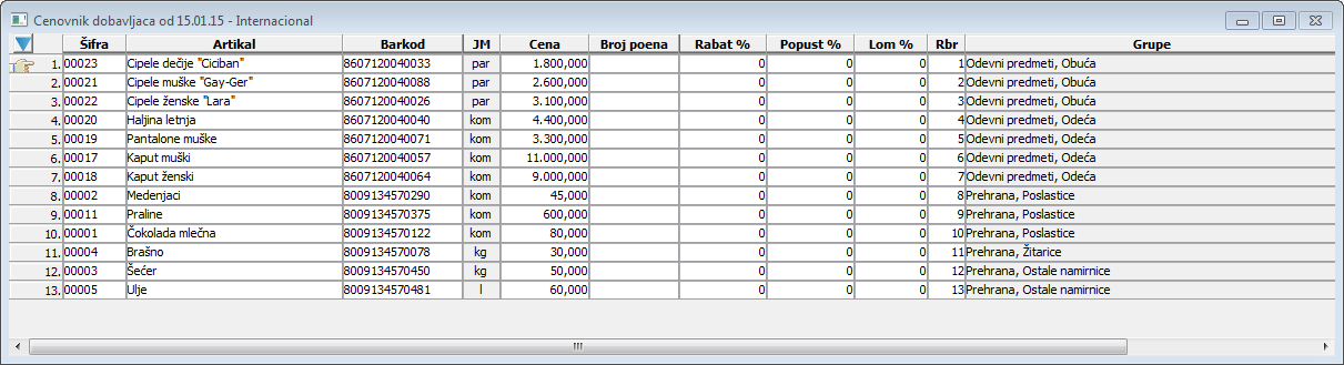 Cenovnik po grupama - na štampi će se videti prikaz cenovnika artikala po grupama kojima dati artikli pripadaju.