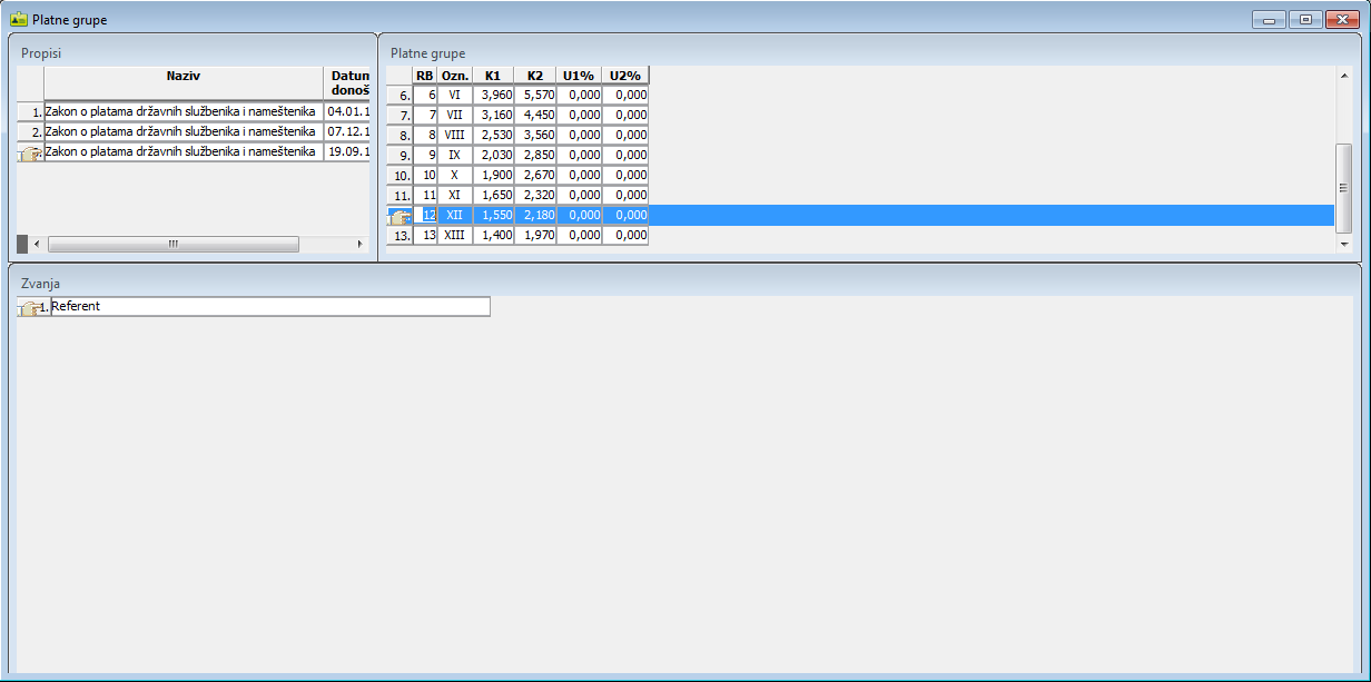 U podprozoru "Zvanja" platne grupe se vezuju za zvanja po specifikaciji državnih organa a koja se stiču zaposlenjem na određeno radno