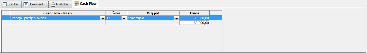 isplata, organizaciona jedinica, komitent…) preći na listić "Cash Flow" i evidentiran iznos povezati