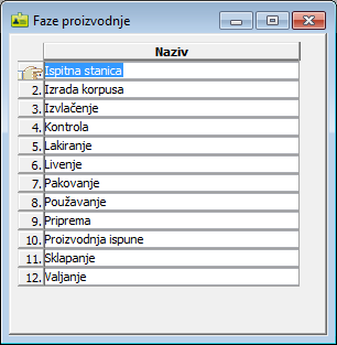 Spisak: Faze proizvodnje - štampa se spisak definisanih faza proizvodnje.