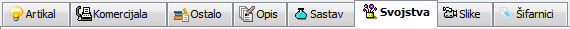 Listić "Svojstva" - obuhvata unos, obradu, brisanje ili pregled svojstava artikla (vidi sliku)