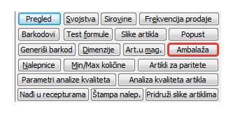 Klikom na dugme "Ambalaža" definišete ambalažu za sve one artikle koji se isporučuju u toj ambalaži ( vidi sliku )