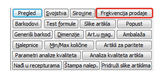"Frekvencija prodaje:" - frekvencija prodaje artikla. Ovaj podatak nema direktne veze sa prodatim količinama;
