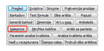 Ovde definisani podaci i veze artikla i nalepnice koriste se u svim magacinskim i operativnim dokumentima klikom na dugme "Nalepnice"