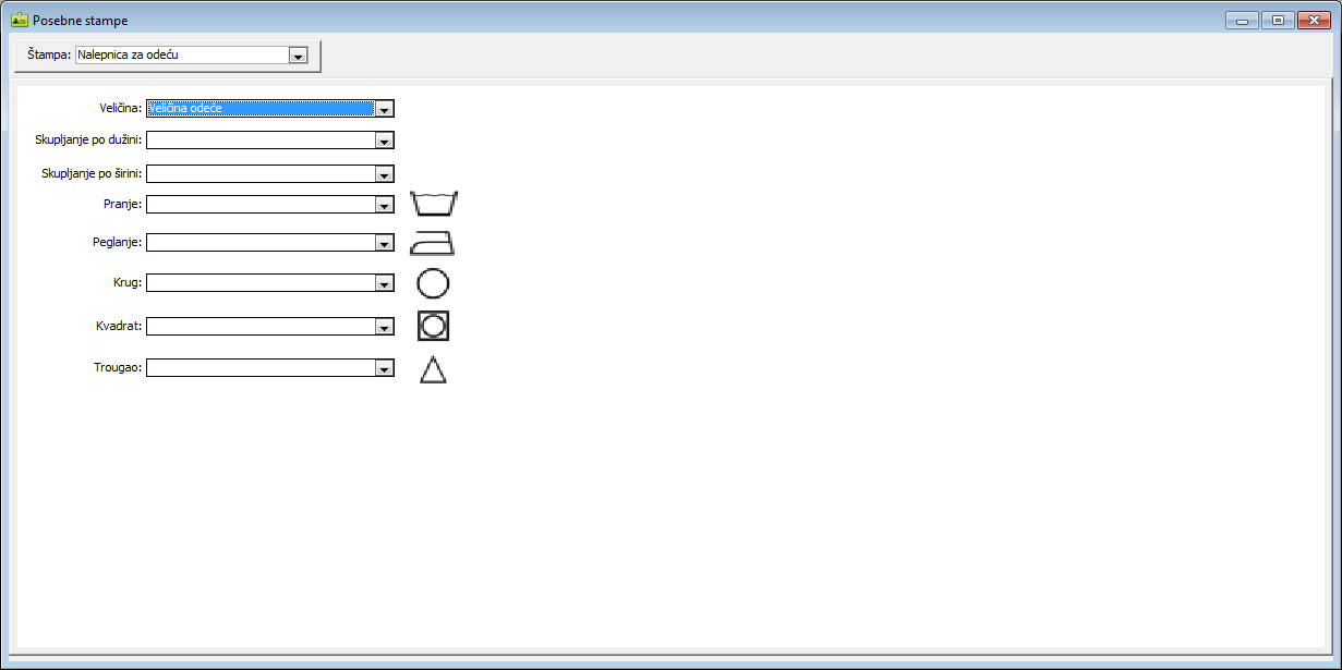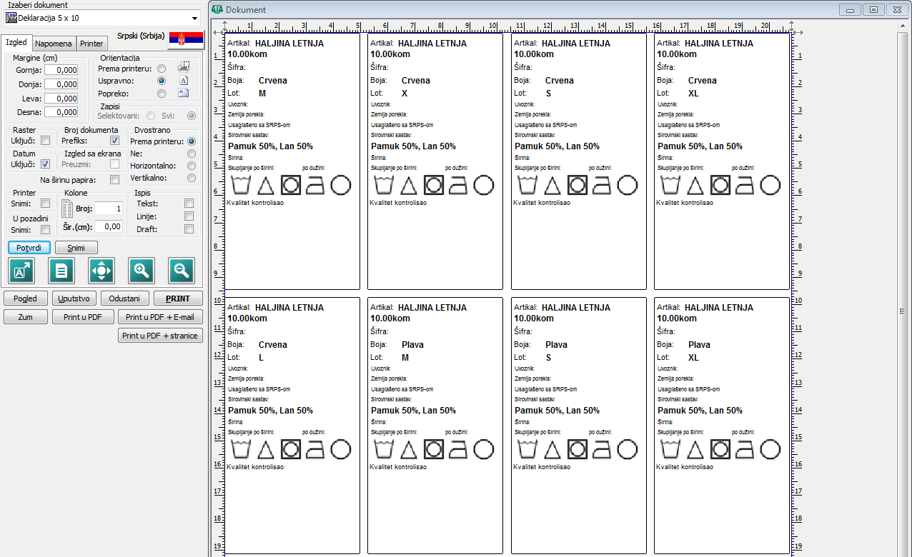 klikom na dugme "Nalepnice" podesiti štampu nalepnica sa deklaracijama za artikal