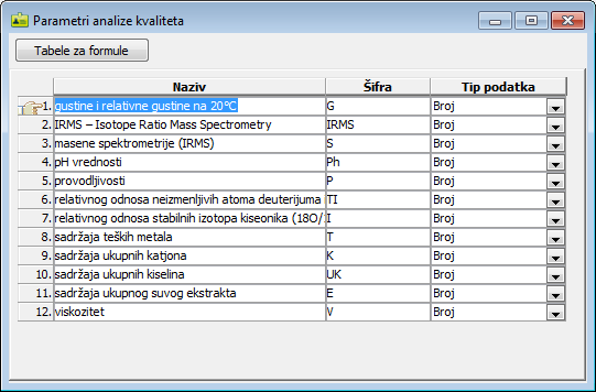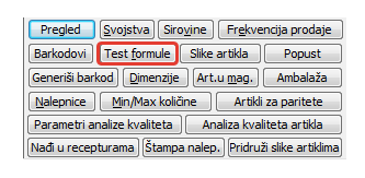 "Test formule" predstavlja prozor u kome je moguće proveriti formule iz kojih se sastoji receptura za određeni