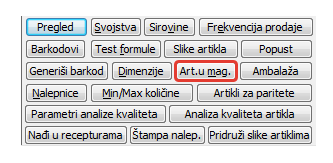 Klikom na dugme "Art.u mag." ažuriraju se podaci samo za selektovane artikle i u selektovanim magacinima klikom na dugme "Ažuriraj" ( vidi sliku )