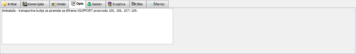 Listić "Opis" - sadrži memo polje koje omogućava unos šireg opisa artikla (vidi sliku)