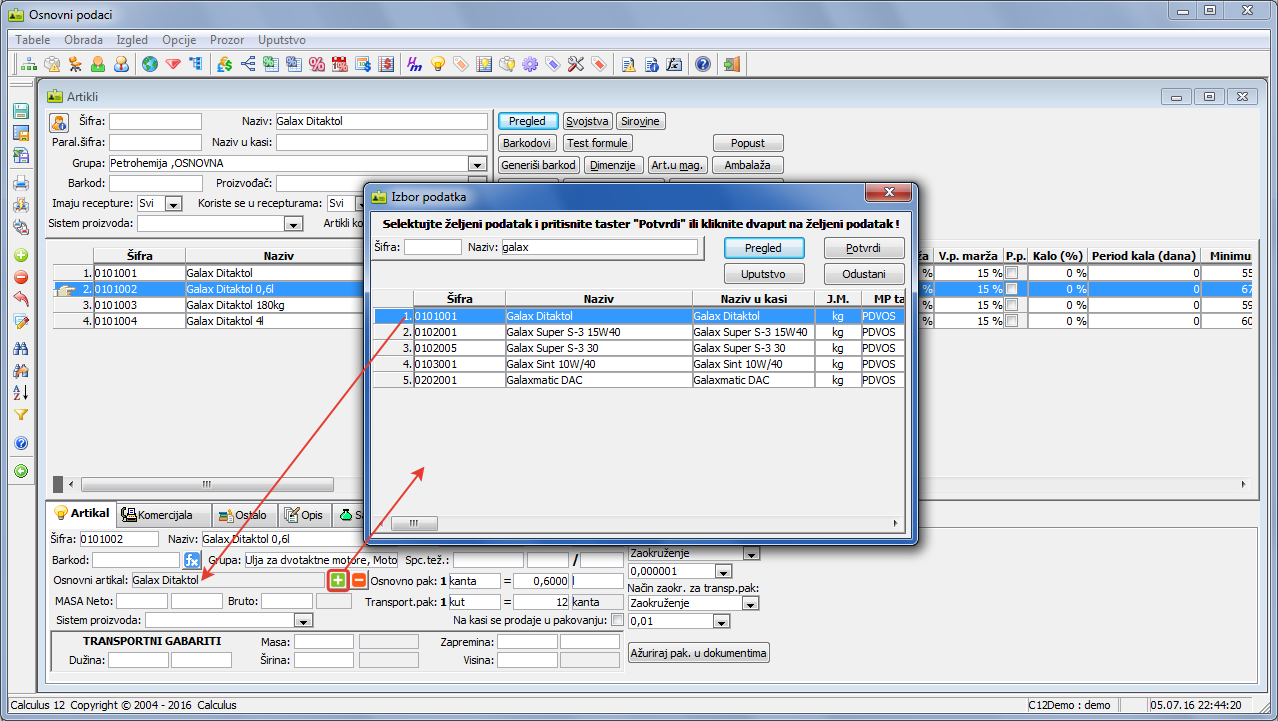 ili pri formiranju tipova cenovnika i cena u jedinici mere osnovnog artikla prepračunom osnovnog pakovanja u jedinicu mere osnovnog artikla ( vidi sliku )
