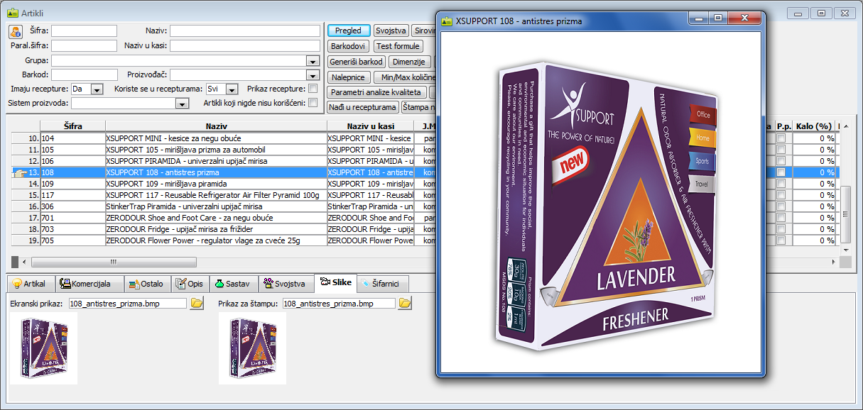 U listiću "Slike" možete artiklu dodati dve predefinisane bitmapirane slike u windows .bmp formatu (vidi sliku)