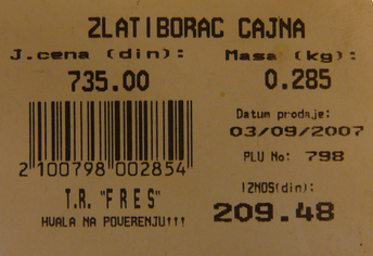 kontrolna cifra je 2. Naravno radi lakše orijentacije, svaka odštampana nalepnica pored težinskog bar koda sadrži i jediničnu cenu,