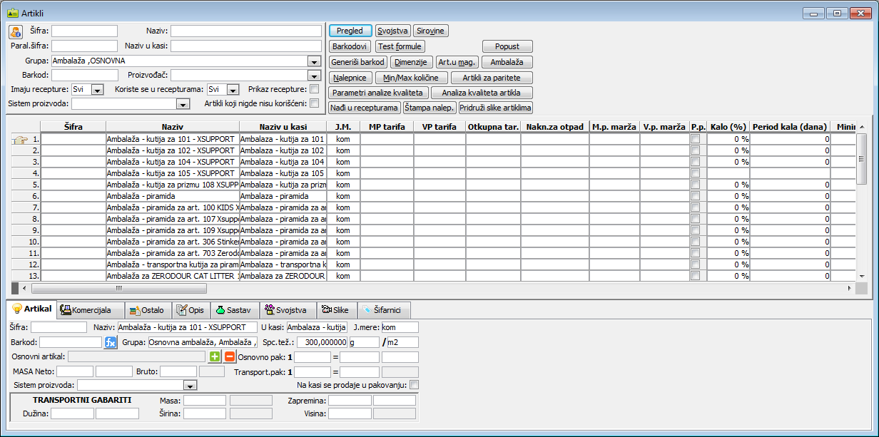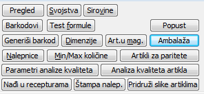 Ambalaža se definiše u prozoru "Artikli" klikom na dugme