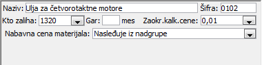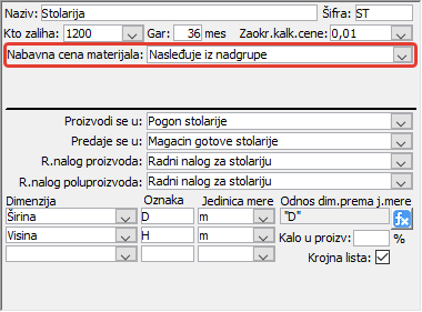 Inicijalno postavljena vrednost polja "Nabavna cena materijala:" je "Nasleđuje iz nadgrupe" ( vidi sliku )