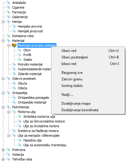 "Editor obrnutog stabla" služi za unos grupa artikala u smislu uređenja ( unos, menjanje naziva, ubacivanje podnivoa odn. podgrupa,