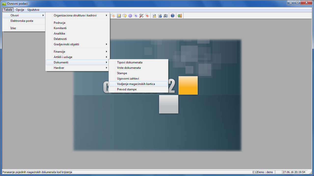 ili klikom na ikonu osnovnog menija "Vođenje magacinskih kartica"