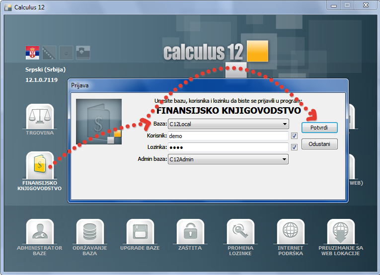 Pokrenite aplikaciju Finansijsko knjigovodstvo iz Calculus 12 aplikacionog menija (vidi sliku)
