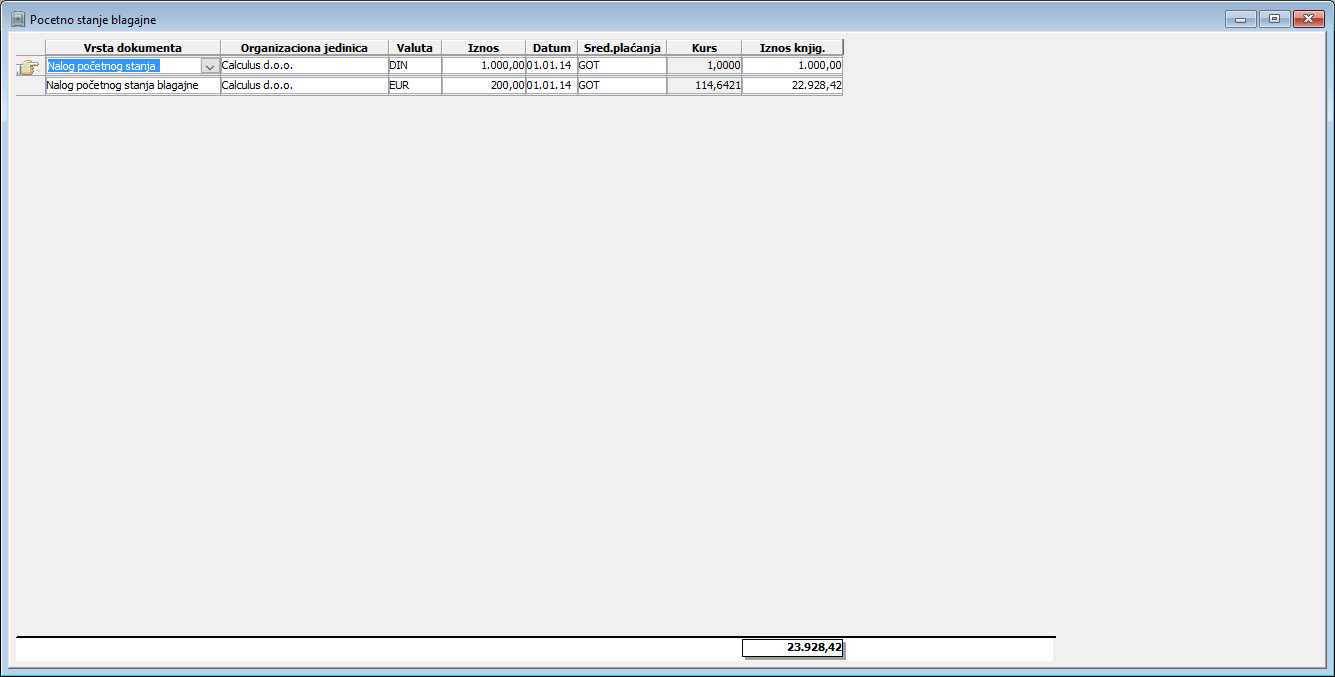 Sva početna stanja uneta na unapred određeni početni datum Calculus 12 koristi kao tačku od koje počinje svaka sledeća poslovna promena (transakcija). To znači da od tog početnog datuma morate uneti svaki dokument koji je nastao pod datumom koji je mlađi od početnog, (nalazi se između početnog i današnjeg), da biste obezbedili potpunu i tačnu računovodstvenu evidenciju.