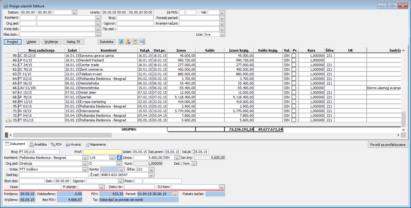 na liniji osnovnog menija. Za unos početnih stanja dobavljača iz glavnog menija odaberite Dokumenti > Otvori > Finansijske knjige > Knjiga ulaznih faktura ili jednostavno kliknite na ikonicu KUF