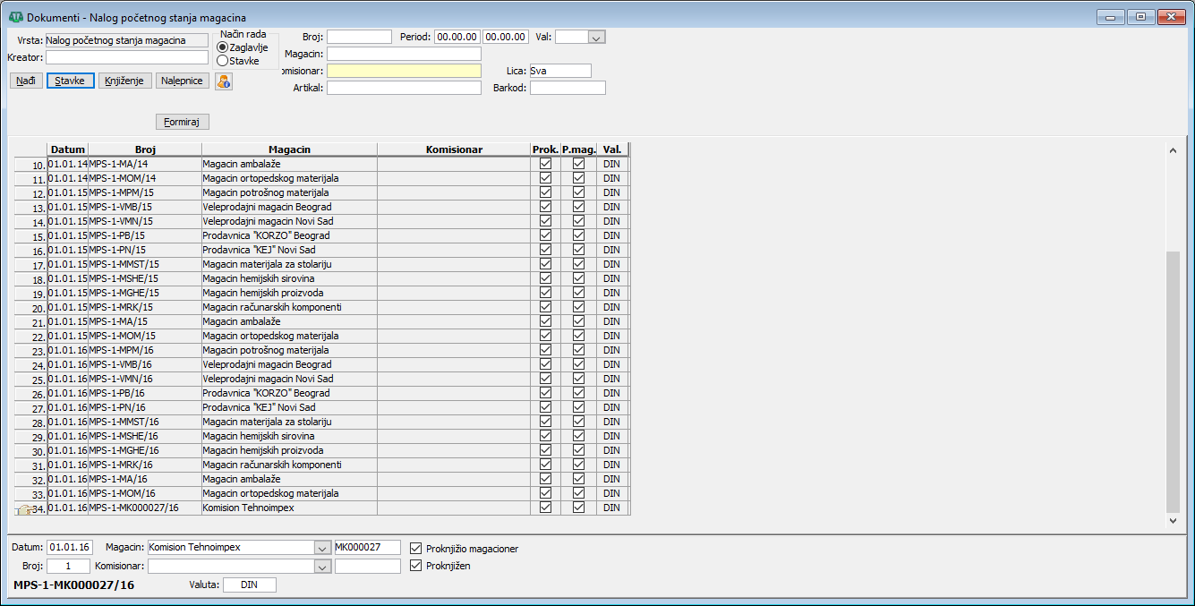 Da biste saznali više o načinu unosa početnih stanja magacina pročitajte uputstvo - Nalozi početnog stanja.