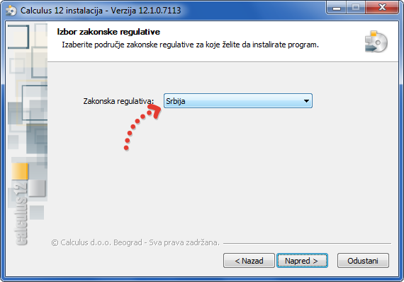 - Izaberite zakonsku regulativu iz ponuđenog padajućeg menija, inicijalno je Srbija. (vidi sliku)