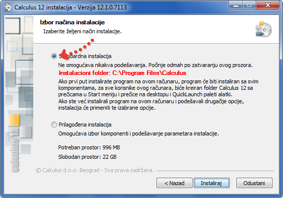 Izabrite standardnu instalaciju!.