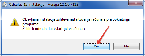 - Nakon završetka instalacije potrebno je restartovanje računara. (vidi sliku)