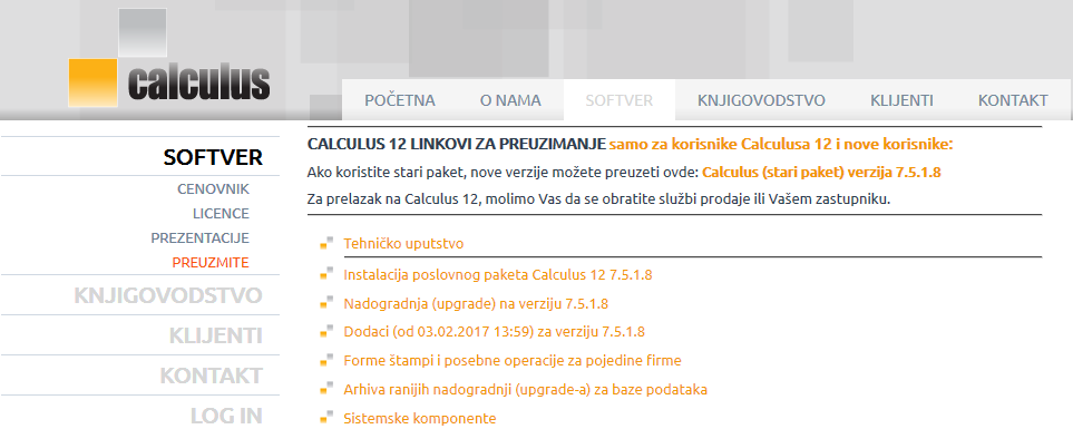- Preuzmite instalacioni fajl sa internet stranice calculus.rs/softver/preuzmite.html "Calculus 12".