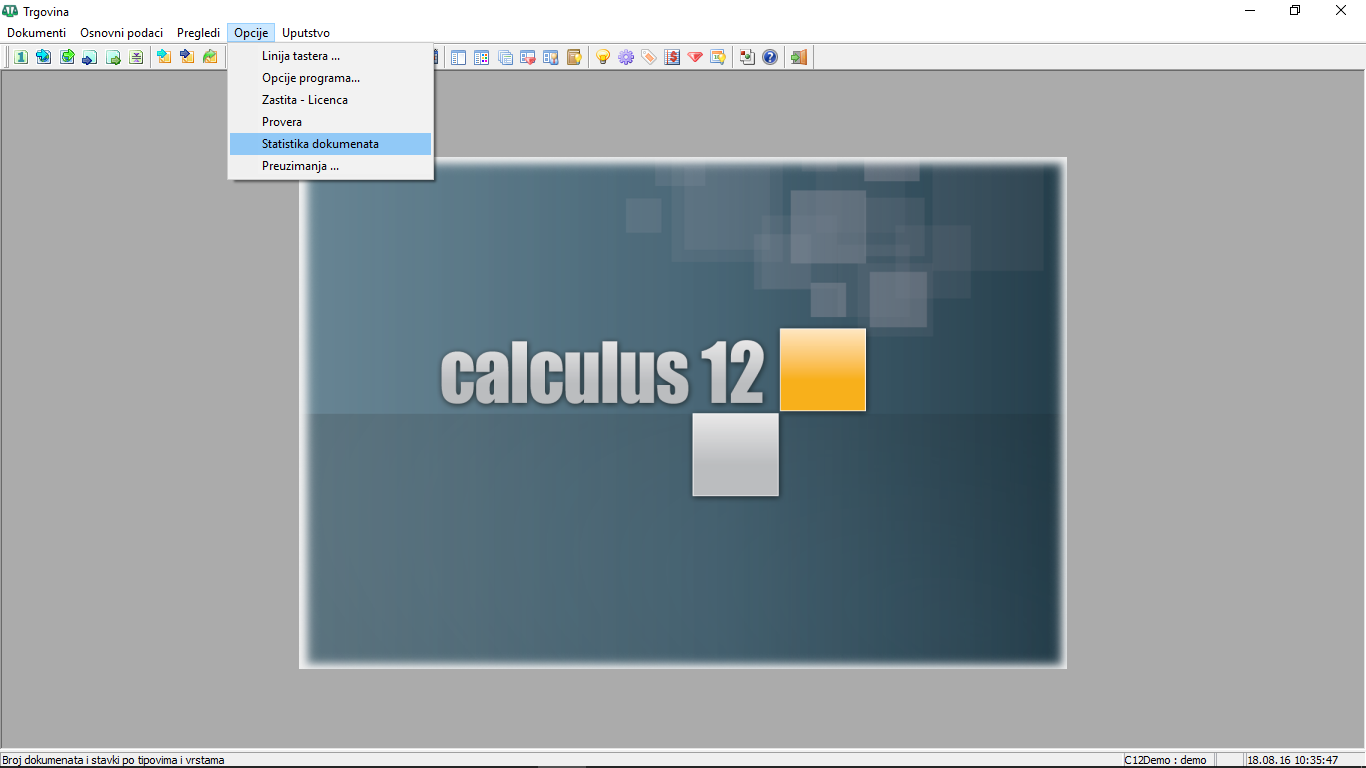 "Opcije - Statistika dokumenata"