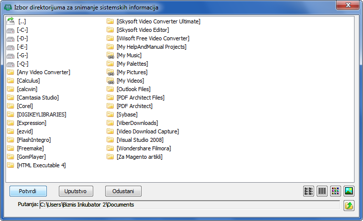 Ove informacije mogu se snimiti u tekstualnu datoteku "CalculusSystemInfo.txt" (podrazumevano u folder "User/Documents")